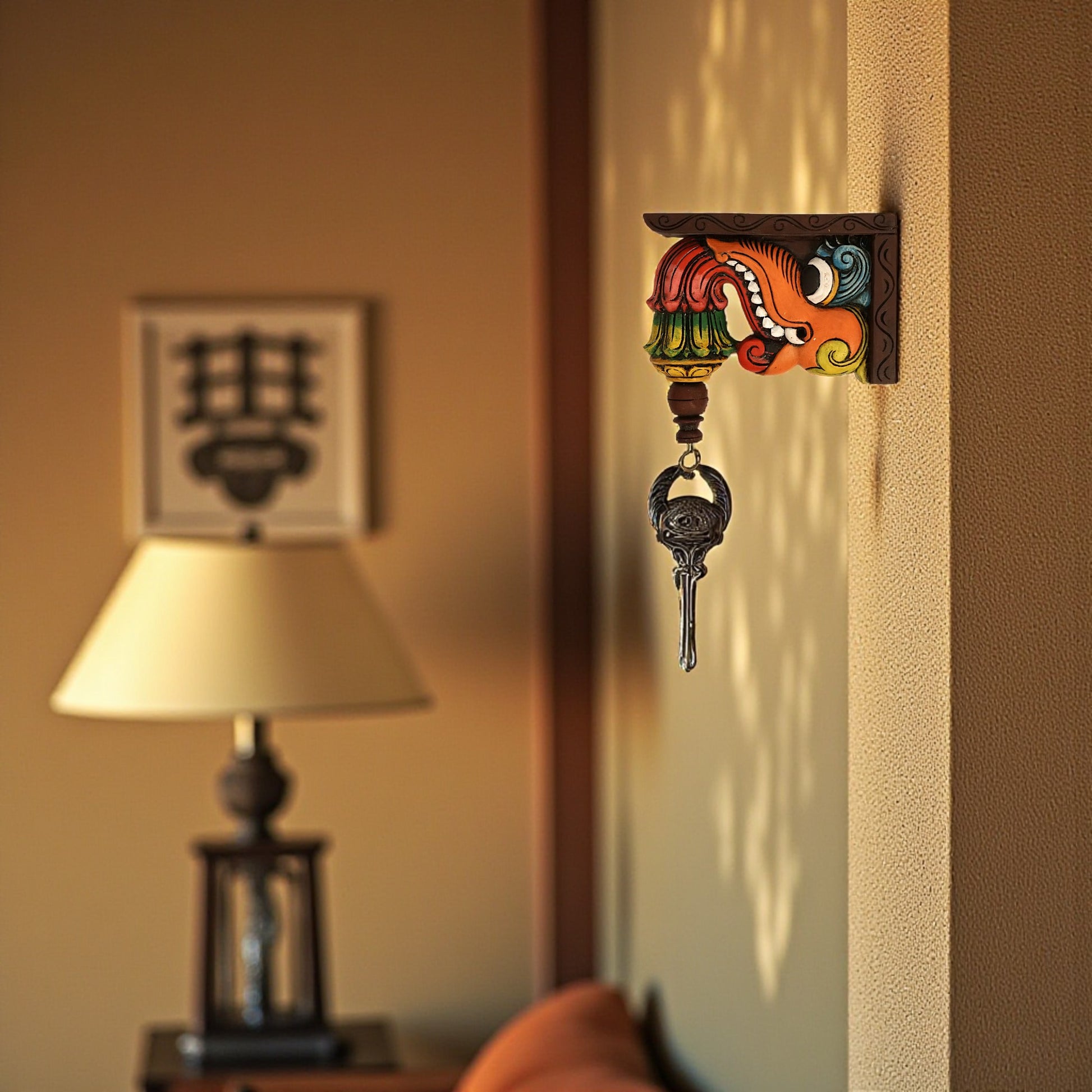 Yaali Vaalai Bracket (Small & Color) – Hand-Carved and Painted Wooden Yazhi Bracket