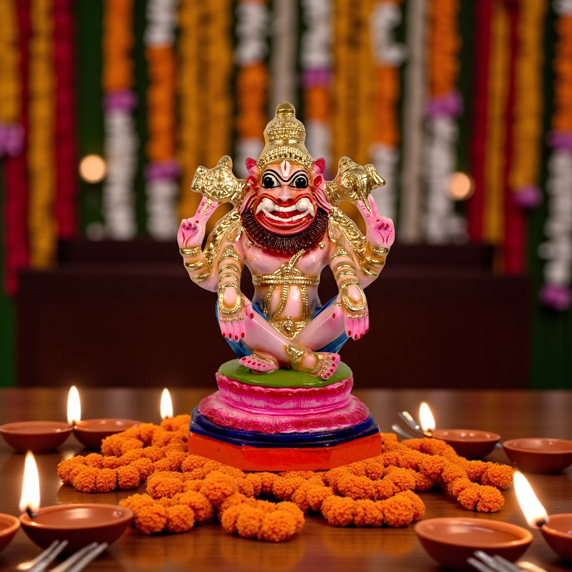Yoga Narasimha Eco-Friendly Paper-Mâché Handcrafted Figurine – Navratri Golu & Spiritual Décor
